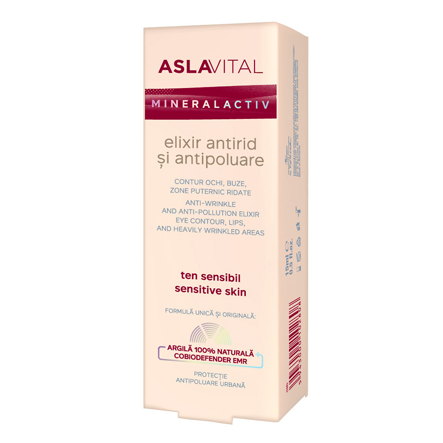 Elixir antirid si antipoluare Aslavital Mineralactiv este o crema pentru ingrijirea zonelor puternic ridate din jurul ochilor si buzelor. Formularea lejera, usor emolienta, cu o buna capacitate de repartizare pe piele, dar bogata in antioxidanti si ingrediente antirid naturale, este potrivita tenurilor sensibile.