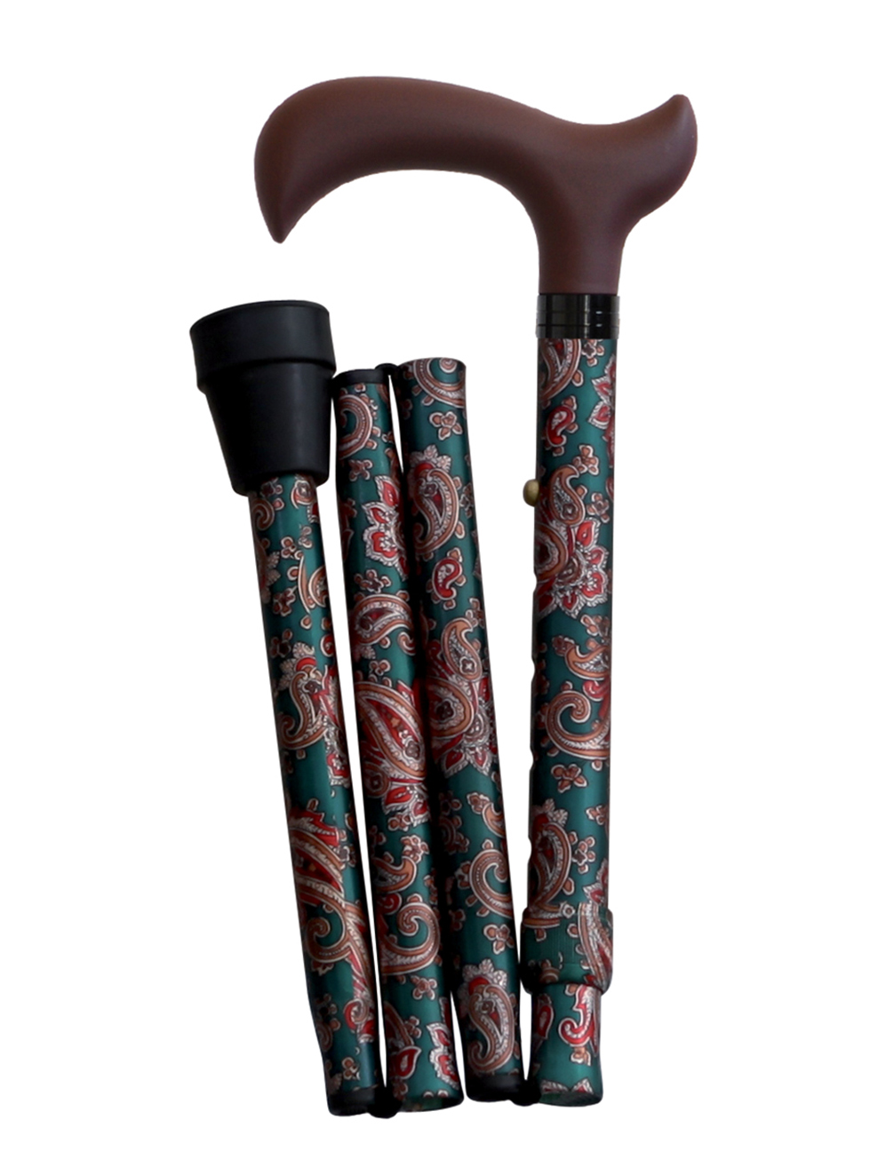 Bastonul pliabil produs de firma Herdegen, Franta, este un baston ortopedic care poate fi pliat pentru transport si depliat la momentul utilizarii. Operatiunea de pliere/depliere este asigurata prin intermediul a patru segmente montate unul intr-altul, sustinute de o banda elastica care mentine bastonul in pozitie de utilizare. Bastonul are o inaltime reglabila si se realizeaza prin simpla apasare a unui buton de reglaj aflat pe segmentul cu manerul. Corpul bastonului este fabricat din aluminiu, rezistent, tratat electrochimic impotriva coroziunii si infrumusetat cu modele florale colorate. Manerul Derby este din polipropilena, placut la atingere si cu o prindere sigura. Capatul inferior al bastonului este prevazut cu un amortizor din cauciuc care asigura aderenta cu solul si limitarea zgomotului la deplasare. Pentru transport, produsul este prevazut cu o husa. Bastonul este insotit de instructiuni de utilizare detaliate.