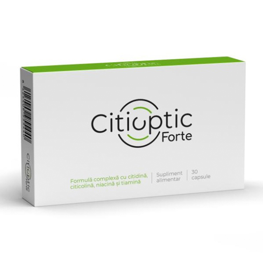 Citioptic Forte este un supliment alimentar cu o formula special dezvoltata, pentru functionarea normala a sistemului nervos (tiamina, niacina). Contine citicolina/ citidina 5’-difosfocolina si vitaminele B3 si B1.