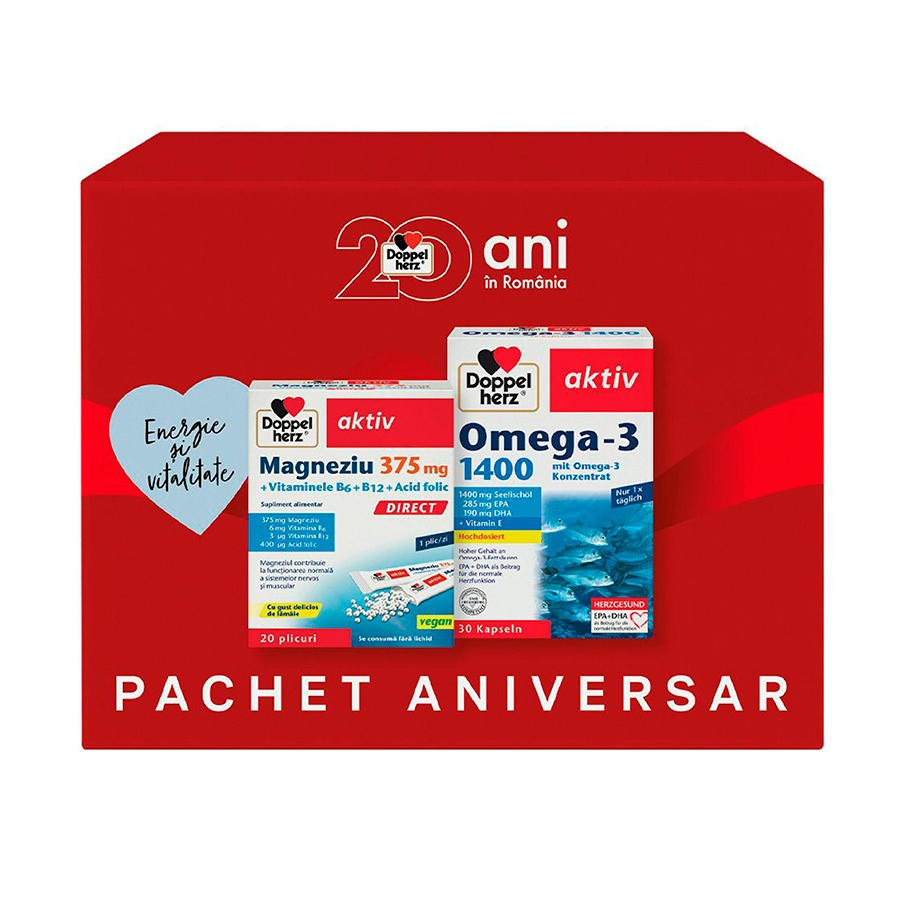 Doppelherz 20 Ani Omega-3 1400, 30 capsule+Magneziu 375mg Direct granule orosolubile, 20 plicuri, Queisser Pharma