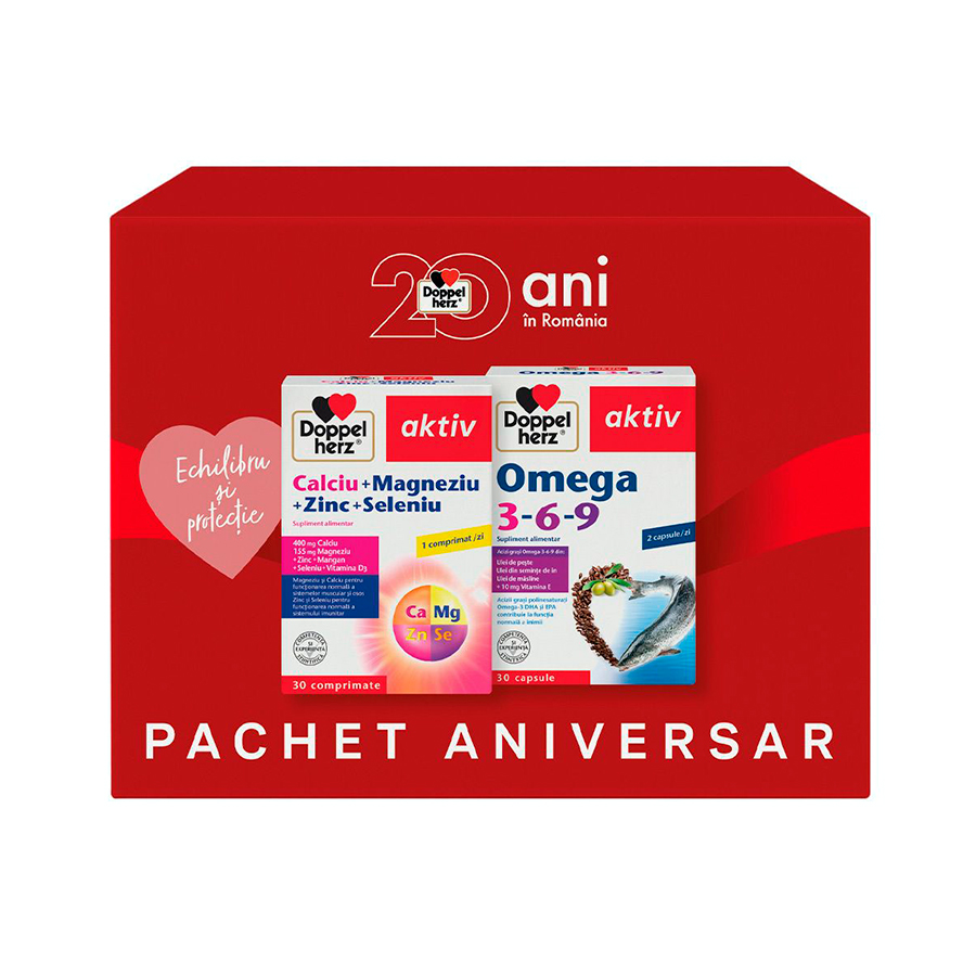 Doppelherz Aktiv 20 Ani Ca+Mg+Zn+Se, 30 comprimate+Doppelherz Aktiv Omega-3-6-9, 30 capsule, Queisser Pharma