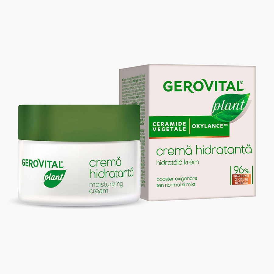 Gerovital Plant Crema Hidratanta este special conceputa pentru mentinerea unui nivel optim de hidratare al tenurilor normale si mixte. Prin efectul Ceramidelor Vegetale, crema imbunatateste hidratarea, elasticitatea si senzatia de confort a pielii. Ajuta la deblocarea si drenarea eficienta a porilor. Contine 96% ingrediente de origine naturala, restul de 4% din ingrediente asigura o buna conservare a formulei.