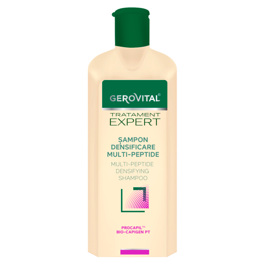 sampon cu Multi-Peptide pentru Densificarea parului subtire si slabit, Gerovital Tratament Expert este formulat special pentru a stimula cresterea sanatoasa si accelerata a parului subtiat si slabit, oferindu-i volum si densitate vizibila. Acest sampon delicat, cu textura usoara, curata eficient scalpul si firele de par, fara a le agresa sau incarca, mentinand un echilibru optim al pielii capului.