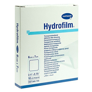 Hydrofilm este un plasture transparent steril, autoadeziv pentru plăgi, pentru protecţie împotriva penetrării bacteriene, a factorilor infecțioși externi şi a iritării mecanice a plăgilor uscate sau uşor exsudative, în stadiu de vindecare primară, destinat plăgilor aproape vindecate, în stare de epitelizare, precum şi fixării pansamentelor pentru plăgi, a cateterelor şi a canulelor.