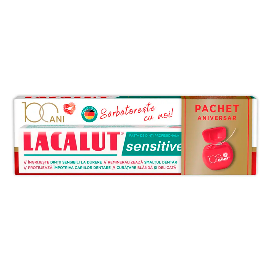Lacalut Sensitive pasta, 75 ml + Ata dentara, 10 m GRATIS, Zdrovit