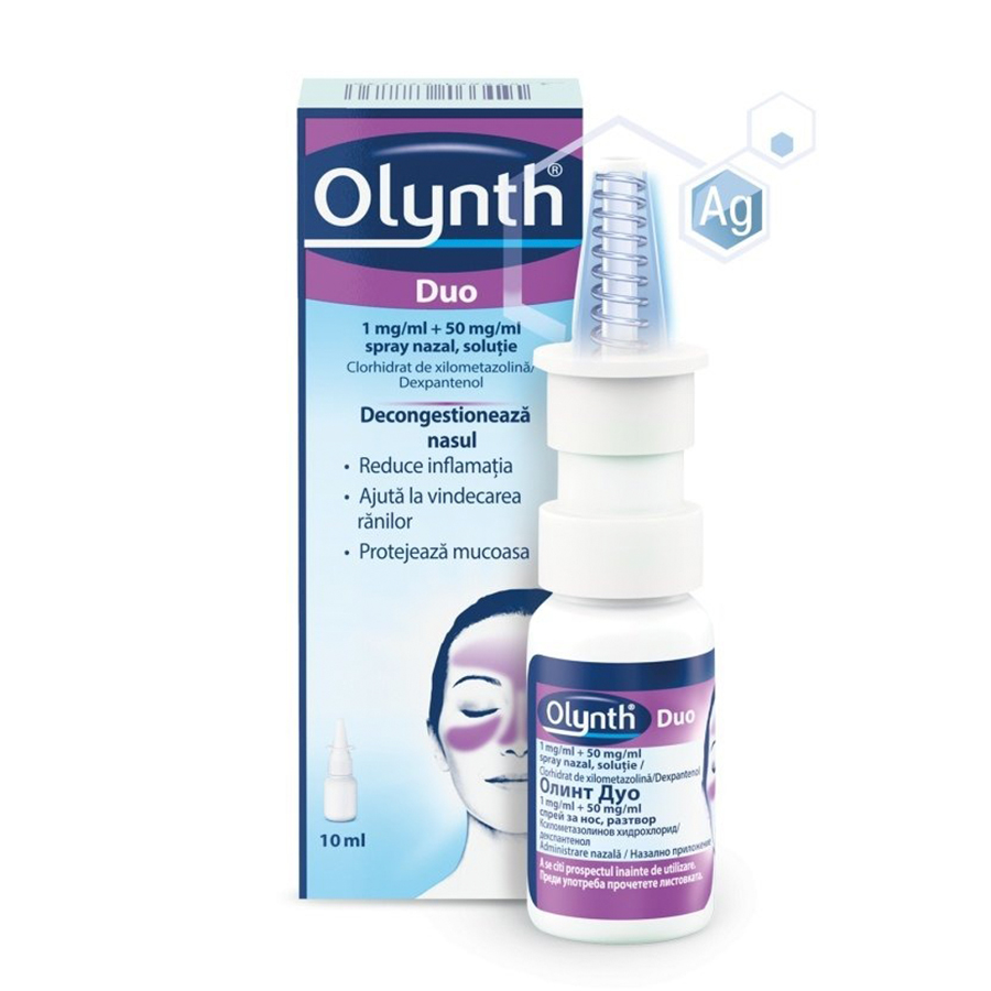 Olynth Duo este indicat pentru: reducerea inflamatiei mucoasei nazale in rinita si ca tratament suportiv pentru vindecarea leziunilor mucoaselor, pentru ameliorarea rinitei vasomotorii si pentru tratamentul obstructiei respiratorii nazale dupa interventia chirurgicala la nivelul nasului.