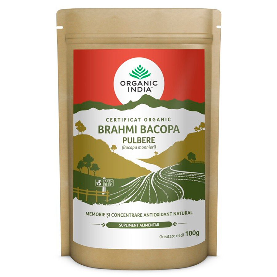 Organic India Brahmi - Bacopa Tonic Cerebral si Memorie Pulbere, 100% Certificata organic, 100 g, BIO, Innovoris Labs