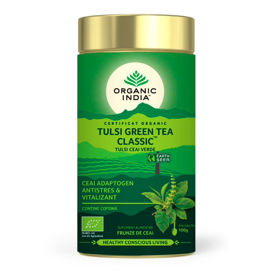 Organic India Ceai Adaptogen Tulsi Ceai Verde, 100 grame, BIO, Innovoris Labs