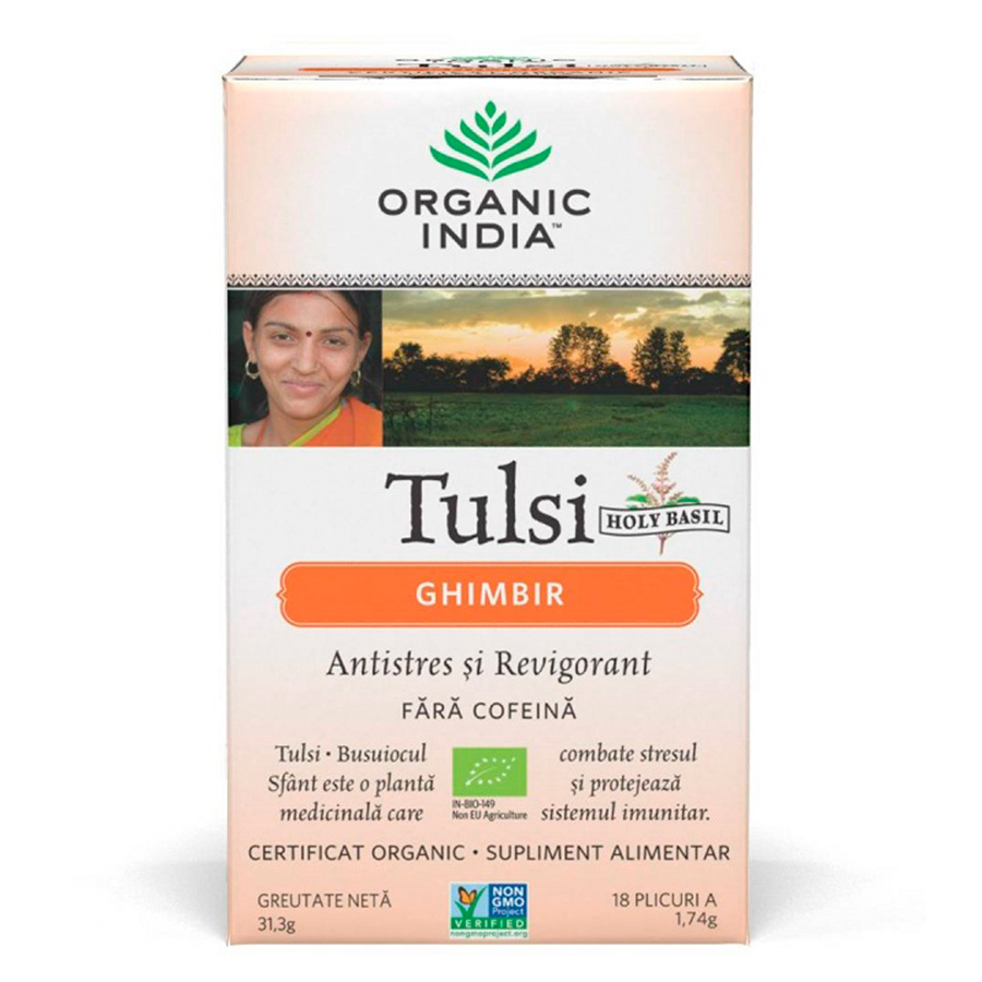Organic India Ceai Adaptogen Tulsi Ghimbir, 18 plicuri, BIO, Innovoris Labs