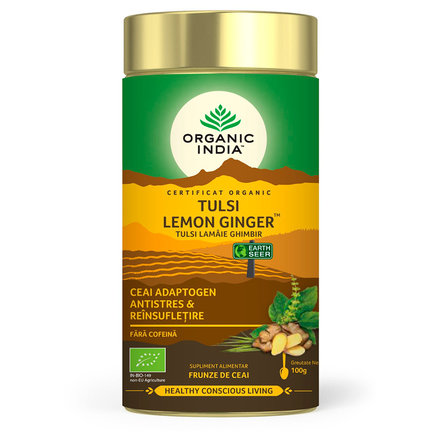 Organic India Ceai Adaptogen Tulsi Lamaie Ghimbir, 100 grame, BIO, Innovoris Labs