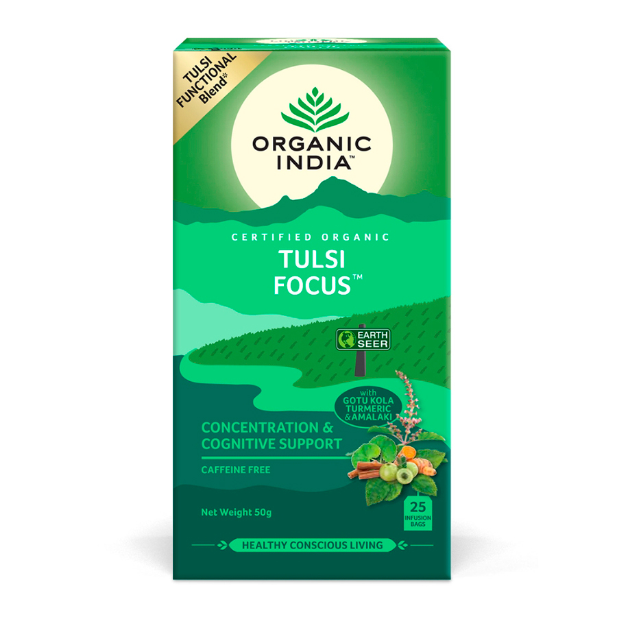 Ceaiul Tulsi Focus, Amestec Adaptogen pentru Concentrare si Sprijin Cognitiv este un amestec hranitor, plin de ingrediente care stimuleaza creierul, pentru a sustine concentrarea, memoria si atentia. Gotu kola, planta longevitatii, a functiei cognitive si a memoriei, este combinata cu pretuita noastra Tulsi si o gama de plante cunoscute pentru sprijinul adus sanatatii creierului si inteligentei creative.
