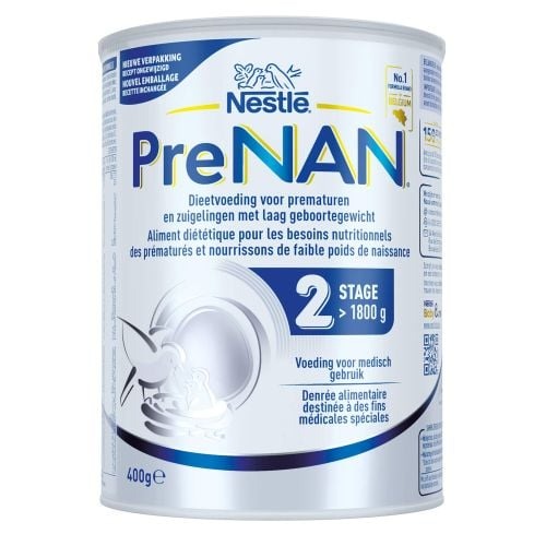 PreNAN® Stage 2 este un aliment destinat unor scopuri medicale speciale, care furnizează cantitățile adecvate de nutrienți pentru a acoperi nevoile de dezvoltare rapidă a sugarilor cu greutate mică la naștere, peste 1.8 kg (prematuri și dismaturi).