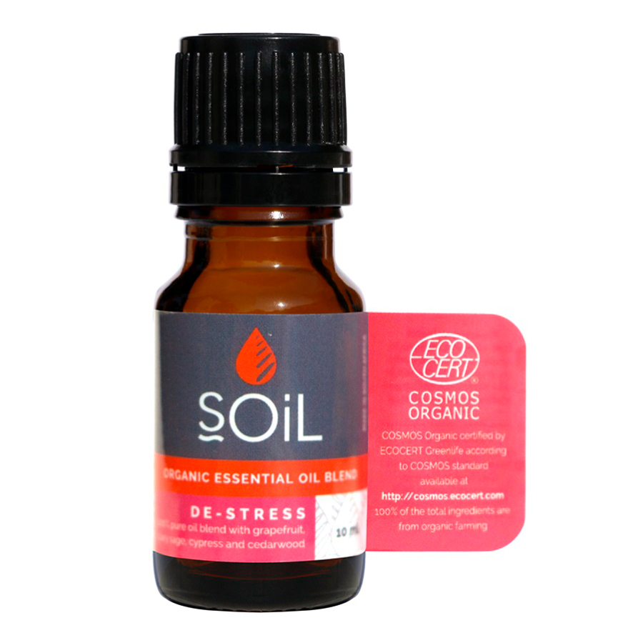 SOiL Amestec de Uleiuri Esentiale Antistres Pure 100% Organice ECOCERT 10 ml este un produs 100% Certificat Organic si nu contine silicon, uleiuri minerale, parabeni, coloranti sintetici sau parfum artificial. Nu este diluat cu alte uleiuri purtatoare.