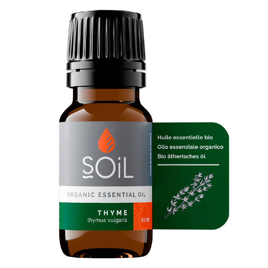 SOiL Ulei Esential Cimbru (Thymus vulgaris) Pur Organic ECOCERT 10 ml este un produs 100% Certificat Organic si nu contine SLS, uleiuri minerale, parabeni, coloranti artificiali, parfum artificial sau silicon. Nu este diluat.