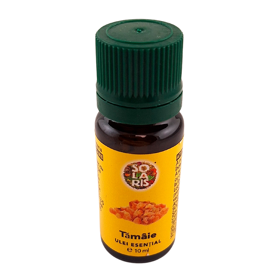 Uleiul esential de Tamaie se extrage prin distilare cu vapori din oleorasina arborelui de tamaie. Uleiul esential de Tamaie este unul dintre cele mai pretioase uleiuri. Mixat cu alte uleiuri esentiale, are proprietatea de a le amplifica. Extrem de benefic pentru imbunatatirea starii mentale si emotionale. Aplicat in cosmetica, ajuta la imbunatatirea structurii epidermei, atenueaza imperfectiunile. Utilizat in aromaterapie, curata si purifica spatiul in care va aflati. Utilizat frecvent in timpul meditatiei si a rugaciunii.