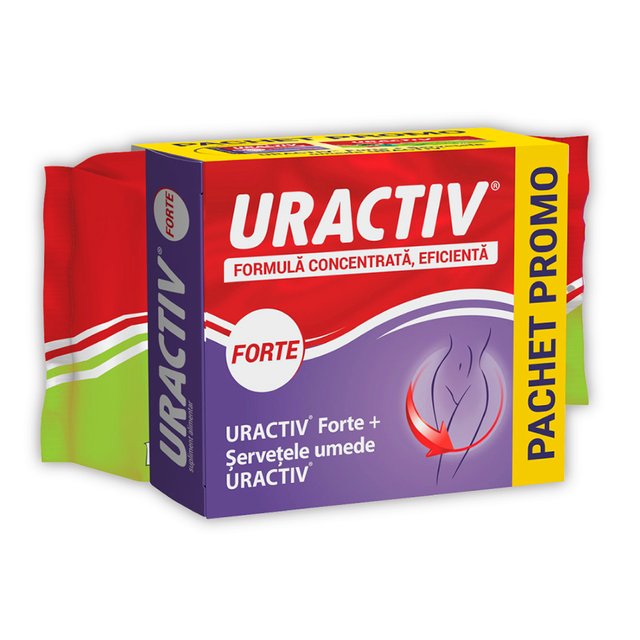Uractiv Forte, 20 capsule + Uractiv servetele umede intime, 20 bucati, Terapia